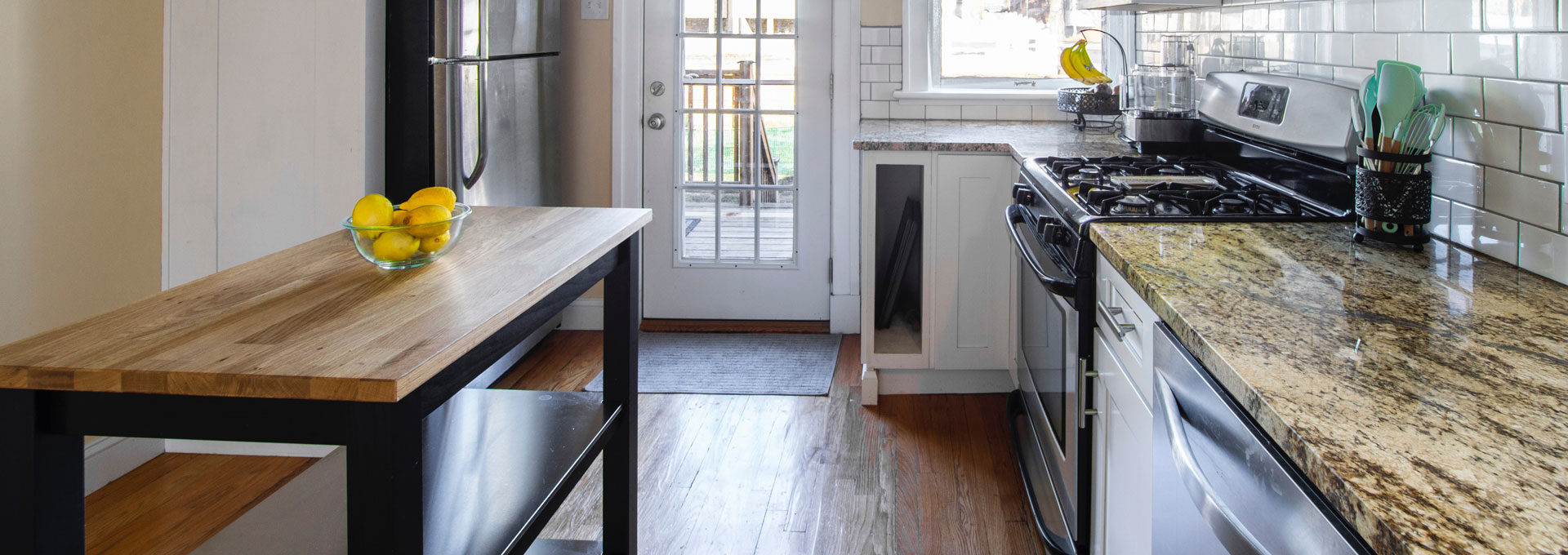 Cleaning inside and outside of the stove, oven microwave and toaster. Wiping outside, behind and under the refrigerator. Cleaning on detail upper and lower cabinets. Washing and brushing the floor